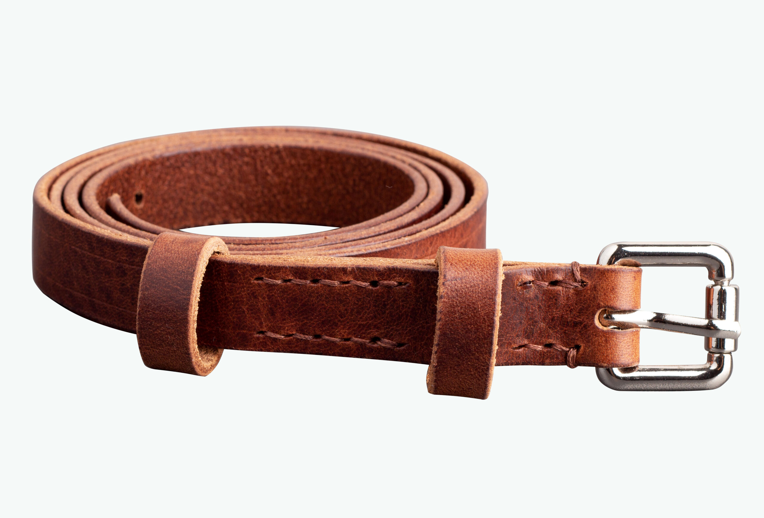 Hand-stitched belt with a convenient small buckle.